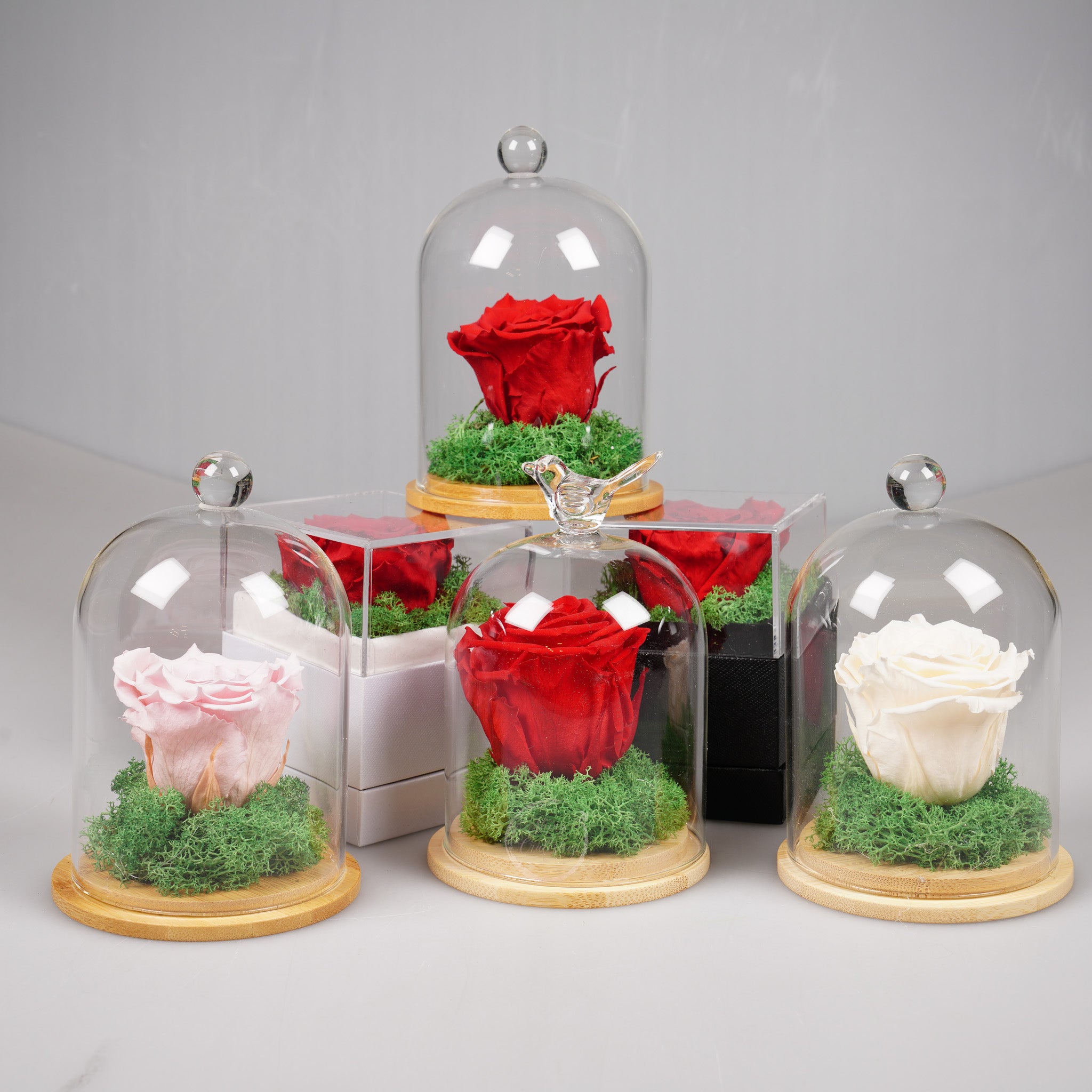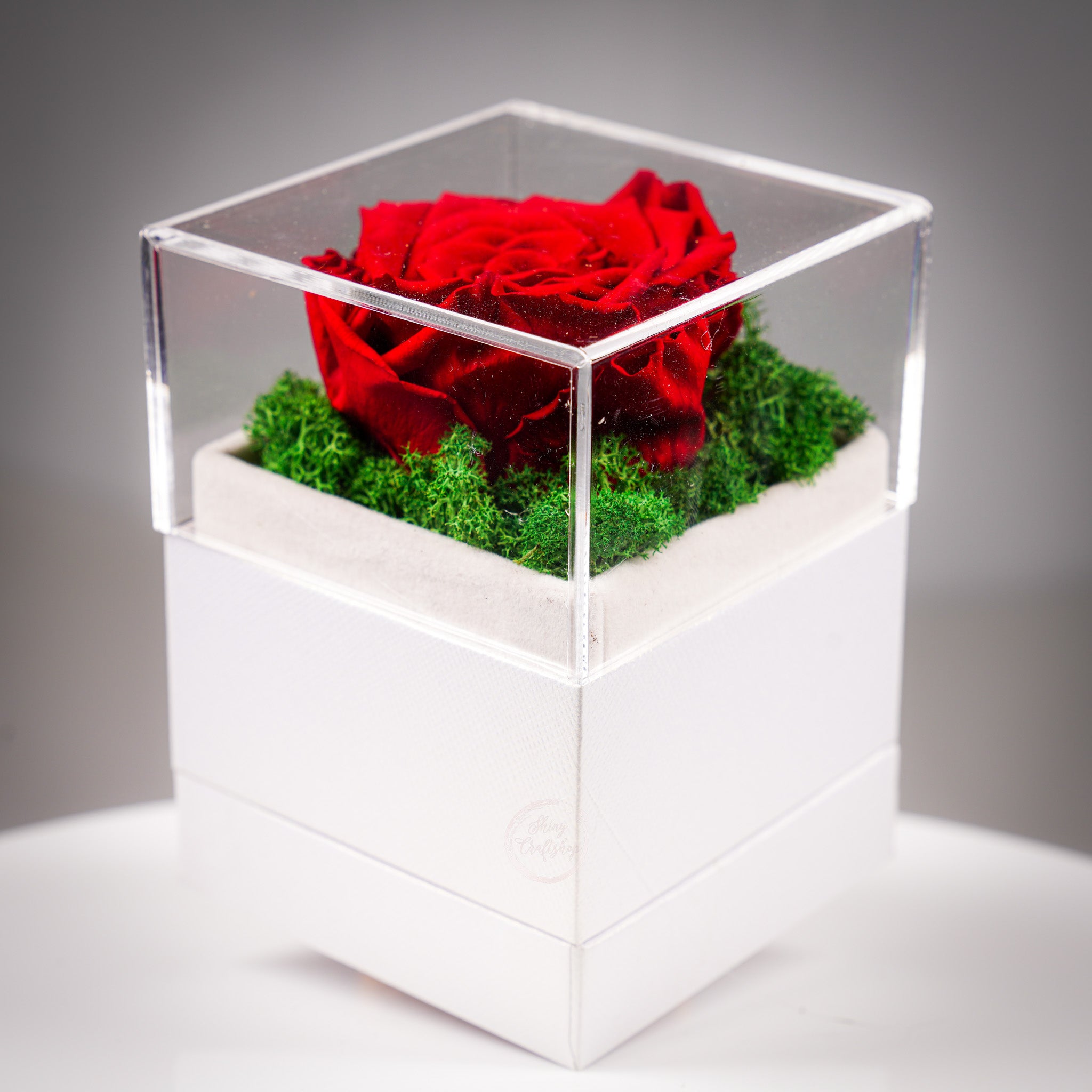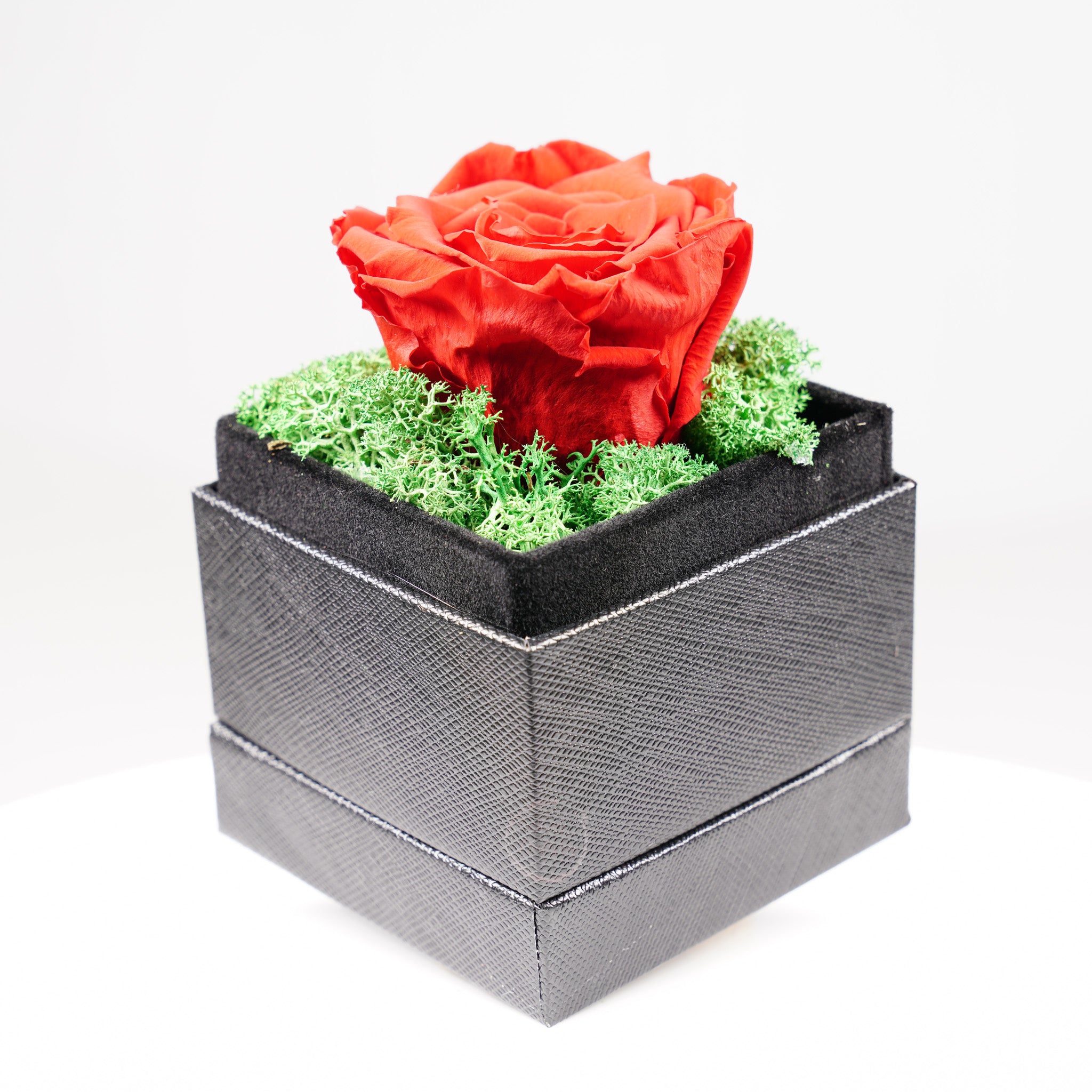 Вечната роза е изискан и стилен подарък, символ на любов, страст и чистота. Всяка композиция е аранжирана върху естествен скандинавски мъх, който придава свежест, текстура и елегантен завършек.