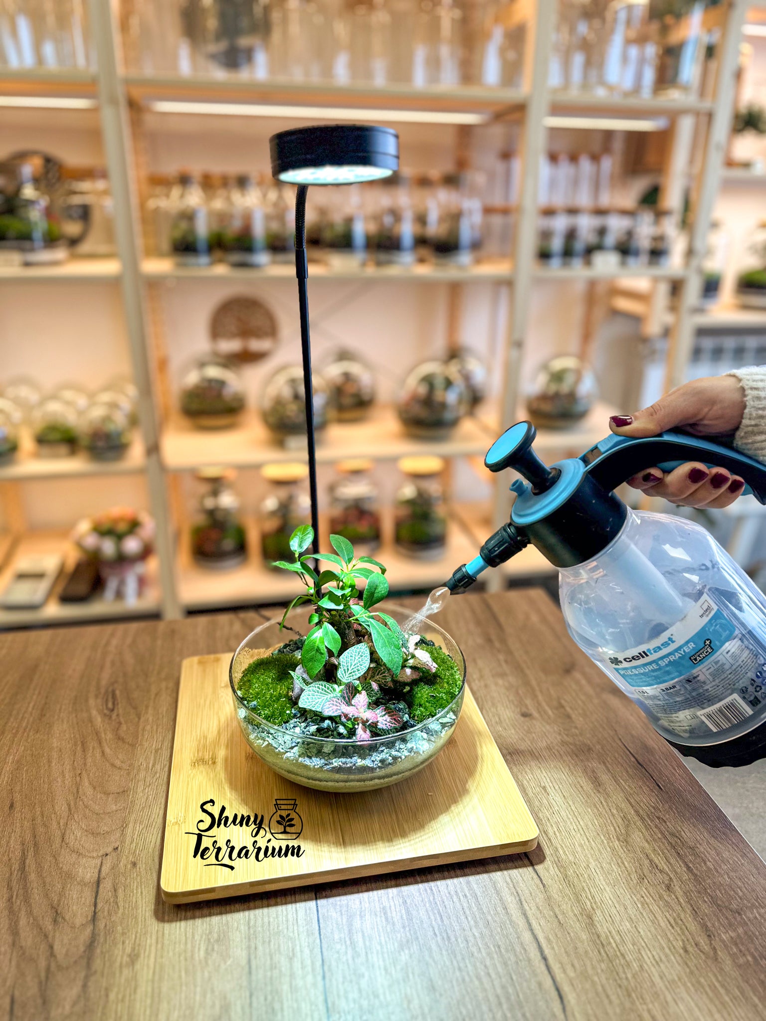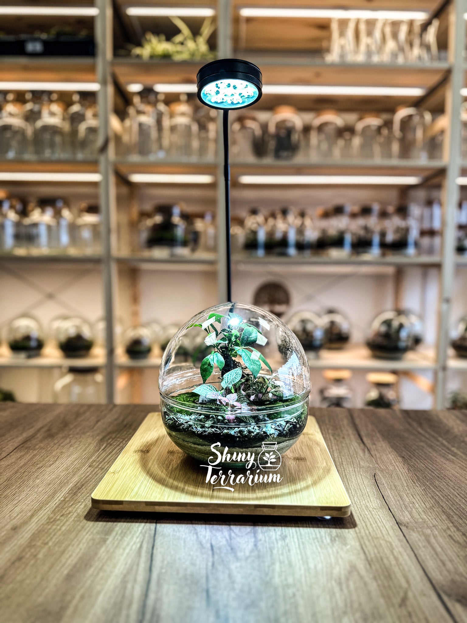 Благодарение на затворената среда, терариумът се грижи сам за себе си – влагата се кондензира и полива растенията, което елиминира нуждата от редовна поддръжка. Тропическите растения произвеждат достатъчно кислород и въглероден диоксид за нормалното си развитие, без да се задушават. Идеален избор за декорация в дома или офиса, както и за луксозен подарък, подходящ за всеки повод.